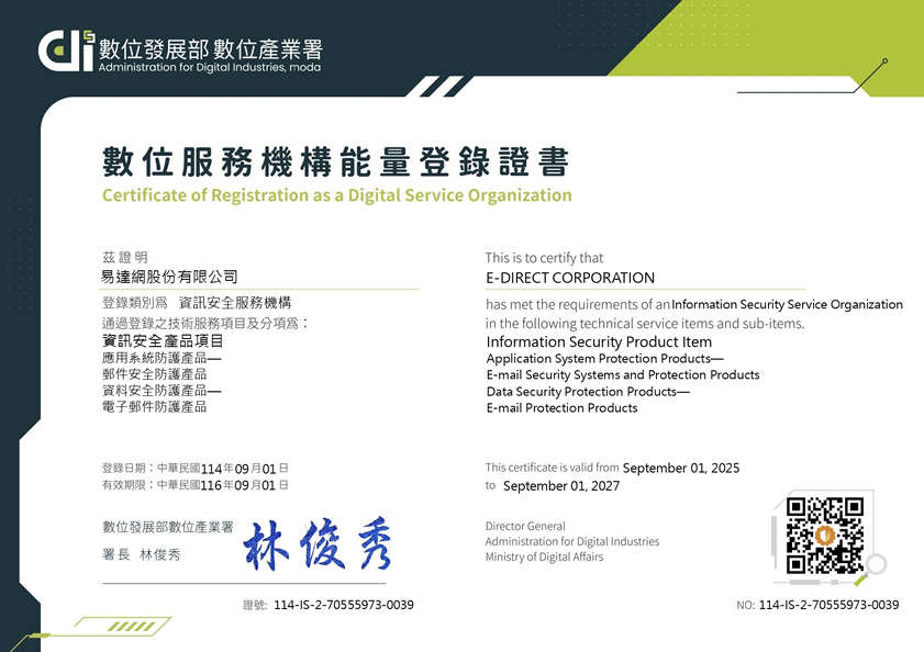 智邦「郵件稽核」可針對寄信及收信進行偵測,除了個人及群組帳號設定外,您也可以指定國別甚至特定網域來偵測可疑郵件,降低遭到釣魚信件詐騙可能。