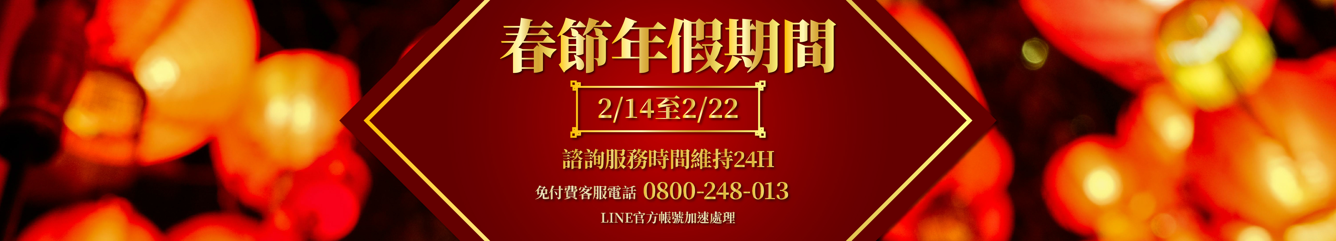 春節期間 2/14 ~ 2/22 免付費客服電話0800-248-013諮詢服務維持24小時,加速處理請多利用智邦官方LINE@(@url0800)。